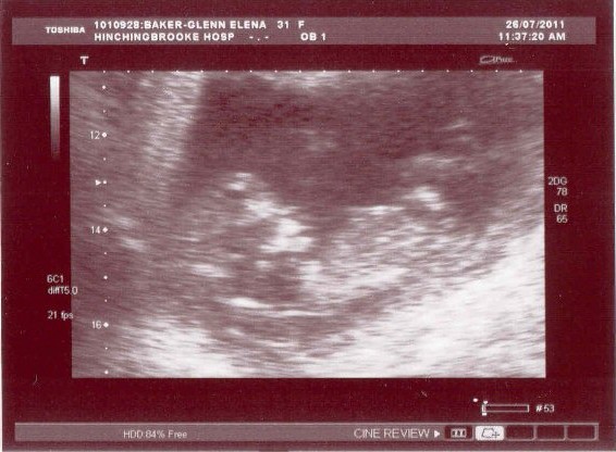 These are the photos of the 12 week scan taken on 26/7/11 at 12+2 weeks gestation. The due date is 5th February.